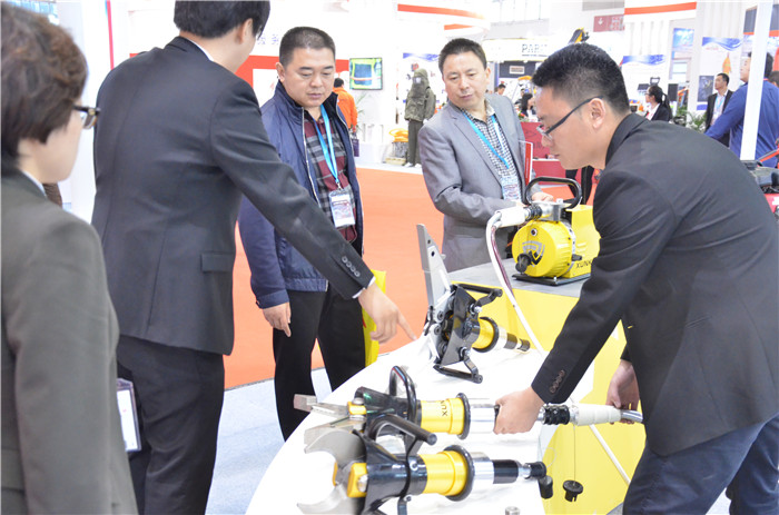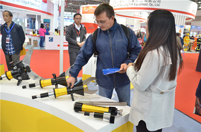 2015年10月,山东新葡京官网携最新开发的第四代液压破拆工具组参加北京国际消防展,本次是第四代液压破拆工具首次亮相,不仅是外观工艺风格的变化,70Mpa额定工作压力,剪切圆钢直径可达35mm,是国内性能最强的液压破拆工具。